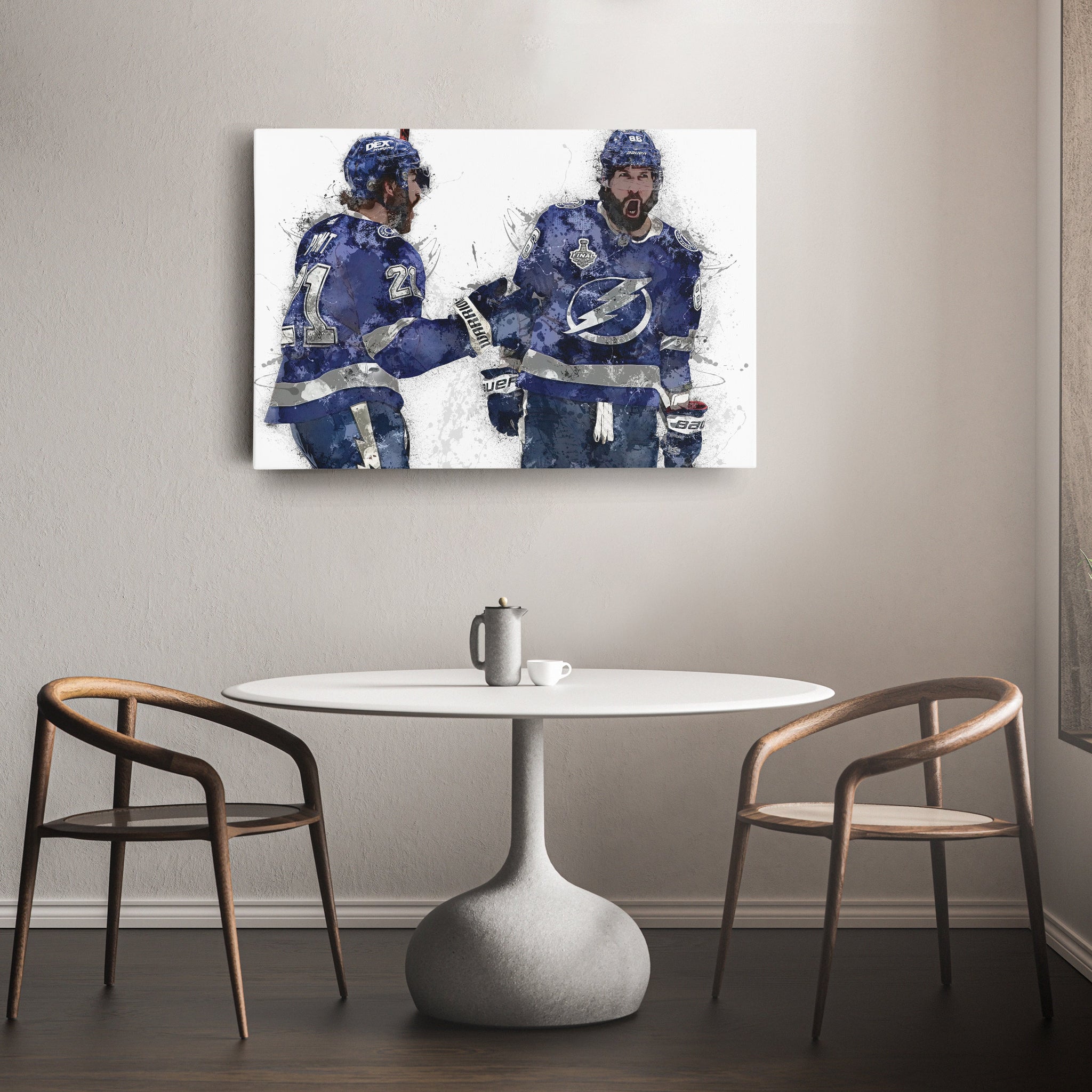 Perfect for Bolts fans, NHL collectors, and those who admire elite playmaking, this premium canvas print features high-resolution detail, sharp blue and white color contrast, and the fierce energy of Tampa Bay’s top-tier talent. It’s a centerpiece-worthy addition to any hockey fan’s game room, office, or man cave.