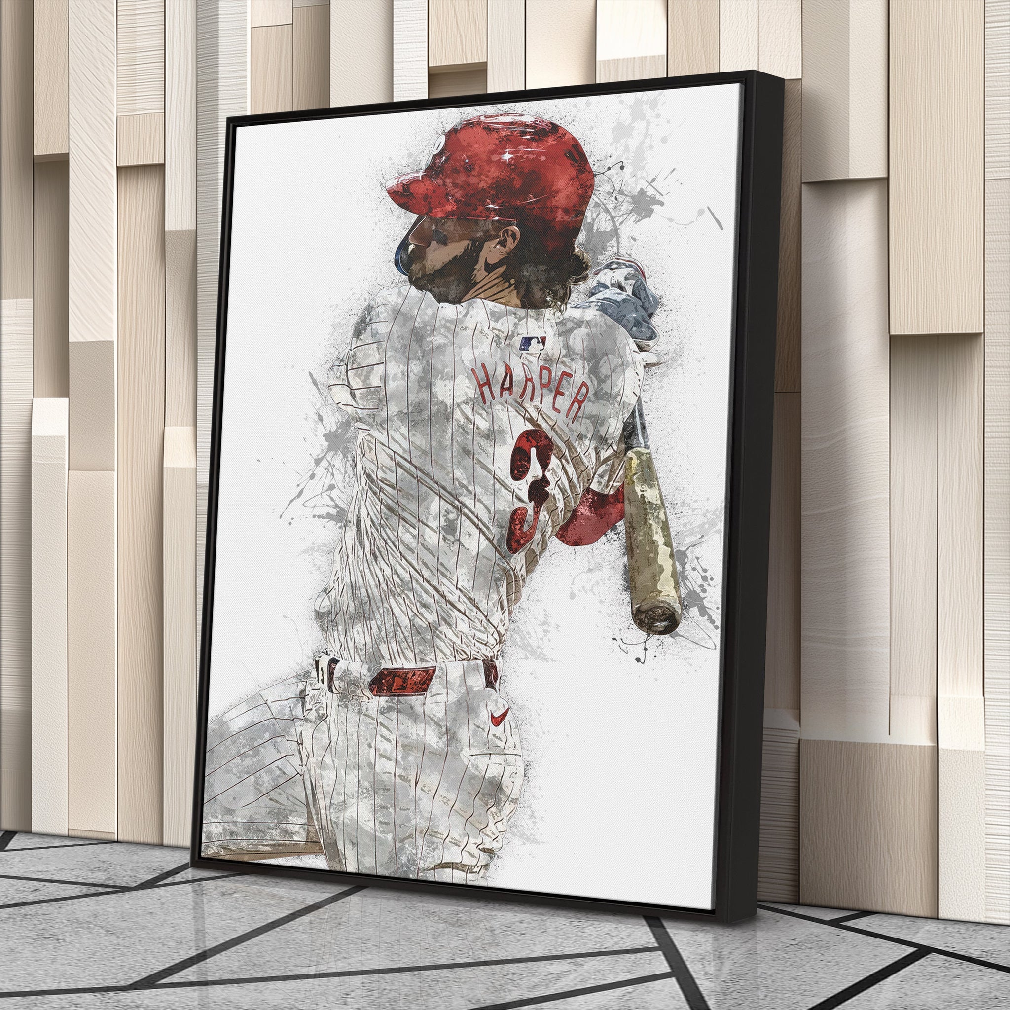 Perfect for Phillies fans, baseball collectors, and lovers of MVP-caliber talent, this premium canvas print features crisp detail, vibrant red and white tones, and the unmistakable fire Harper brings to every game. A standout addition to any sports room, man cave, or office wall.
