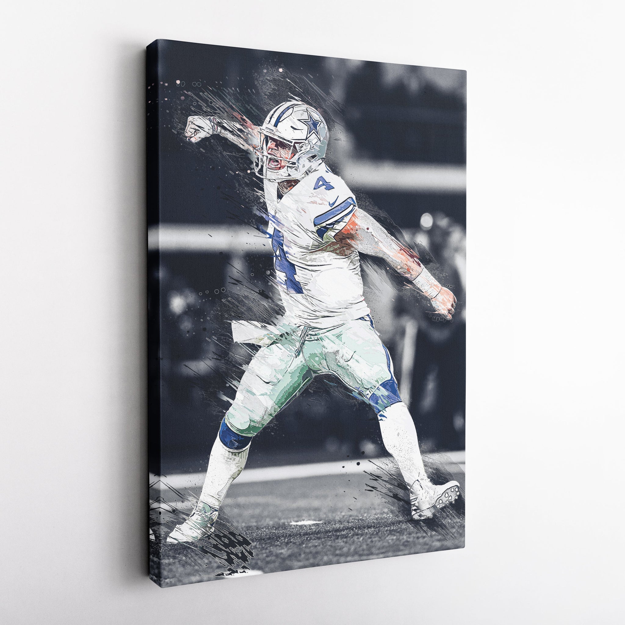 Bring game day spirit and QB leadership to your wall with this Dak Prescott celebration canvas — a must-have for die-hard Cowboys fans.