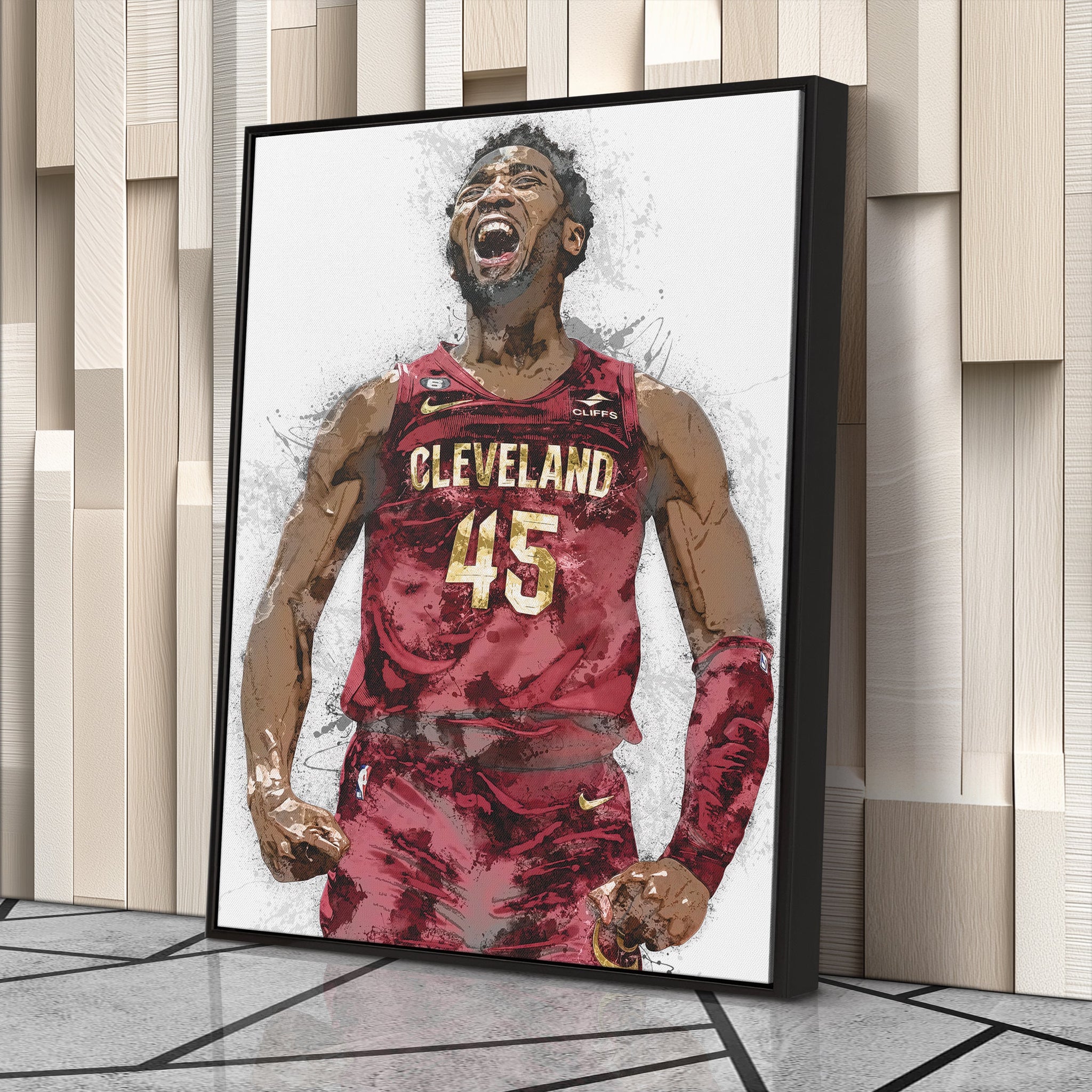 Bring the explosive energy of Donovan Mitchell to your walls with this Cleveland Cavaliers Canvas Art – a bold tribute to one of the NBA’s most electrifying guards. Known for his scoring prowess, high-flying dunks, and clutch leadership, Mitchell has become the heart of the Cavaliers’ new era. This artwork captures him in full intensity, clad in Cleveland’s signature wine and gold.