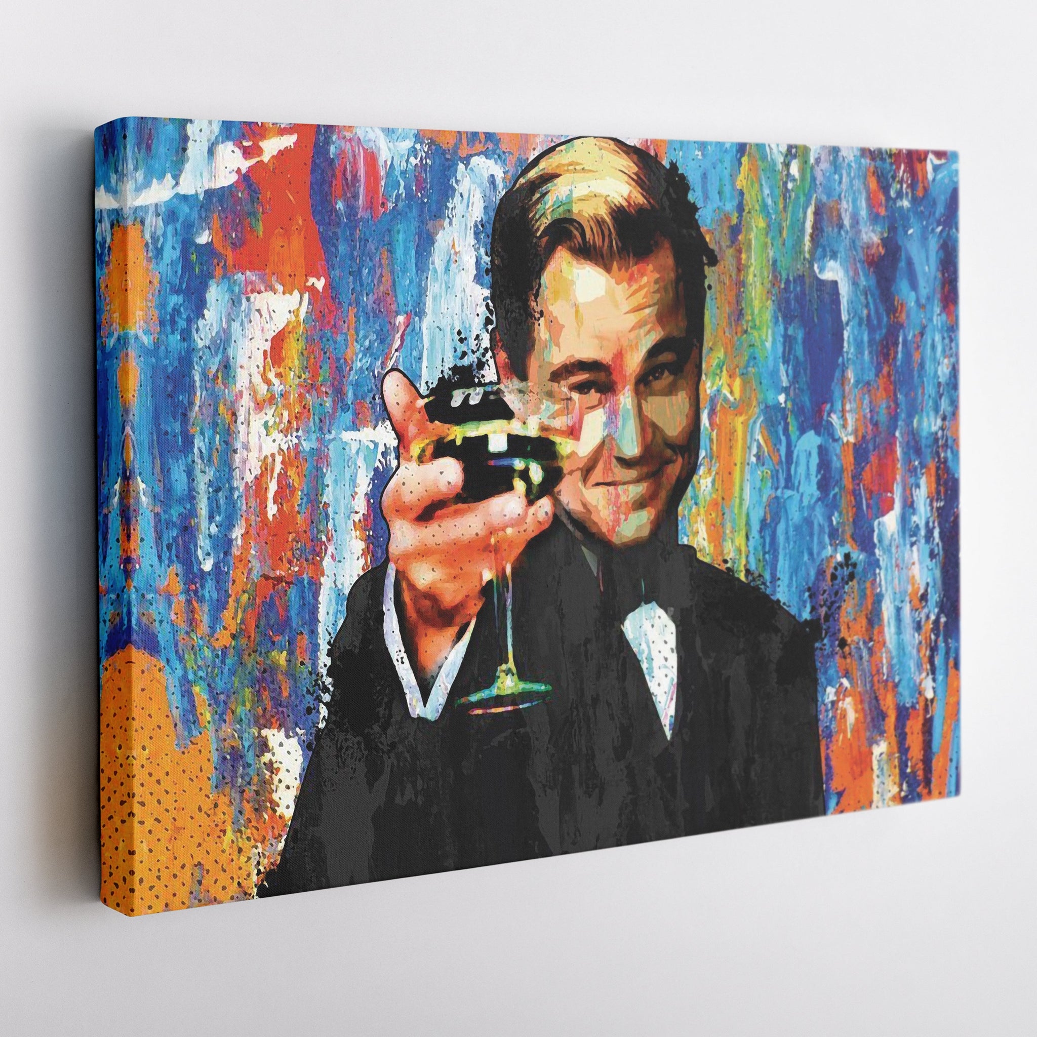 Perfect for film lovers, vintage decor fans, or admirers of DiCaprio’s unforgettable performance, this premium canvas print adds sophistication and timeless flair to any room. Printed on high-quality artist-grade canvas with sharp detail and golden tones, it’s ideal for home theaters, lounges, or Art Deco-inspired interiors.