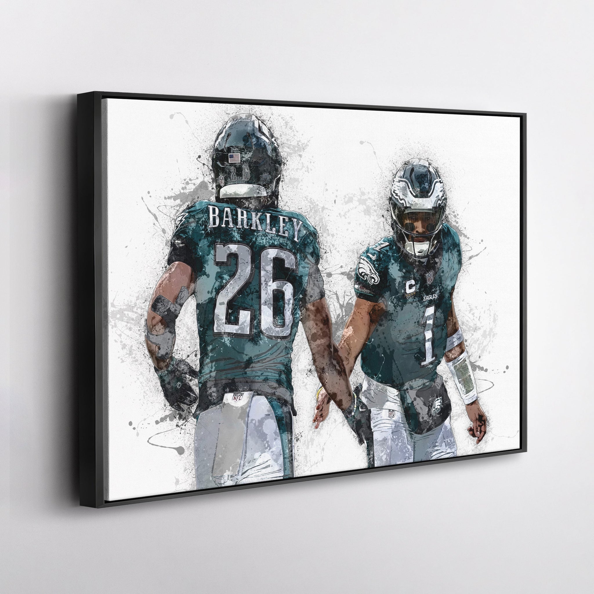This high-quality canvas captures both stars in action, backed by a striking Eagles green-and-black theme that radiates intensity and confidence. Whether you're a die-hard Philly fan or a collector of NFL talent, this piece delivers strength, synergy, and championship ambition to your space.