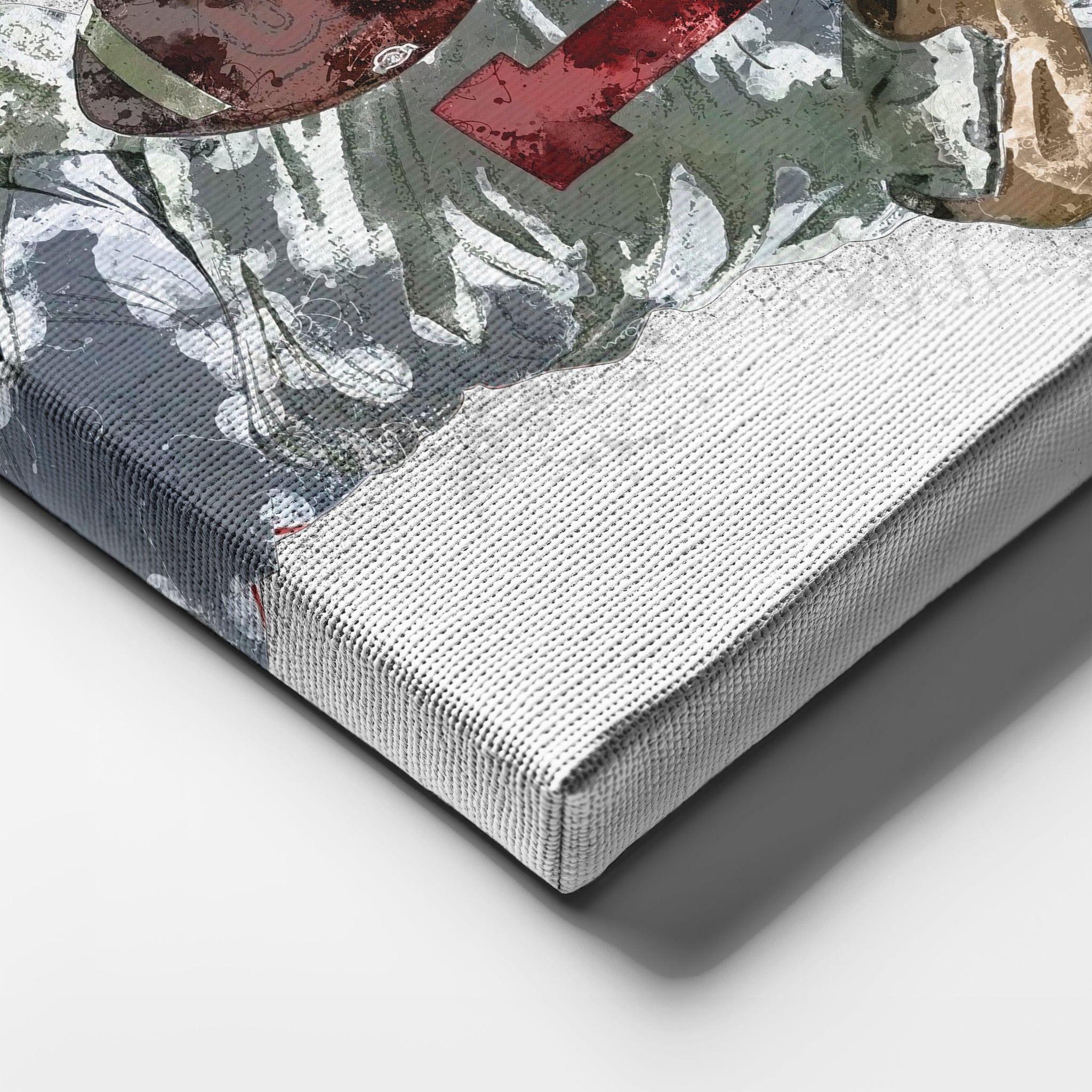 Celebrate a college football icon with this Justin Fields Canvas Art – a dynamic tribute to the former Ohio State Buckeyes quarterback and one of the most electric playmakers in college football history. Capturing Fields in action, whether scrambling, passing, or celebrating, this artwork reflects his strength, precision, and leadership on the field.