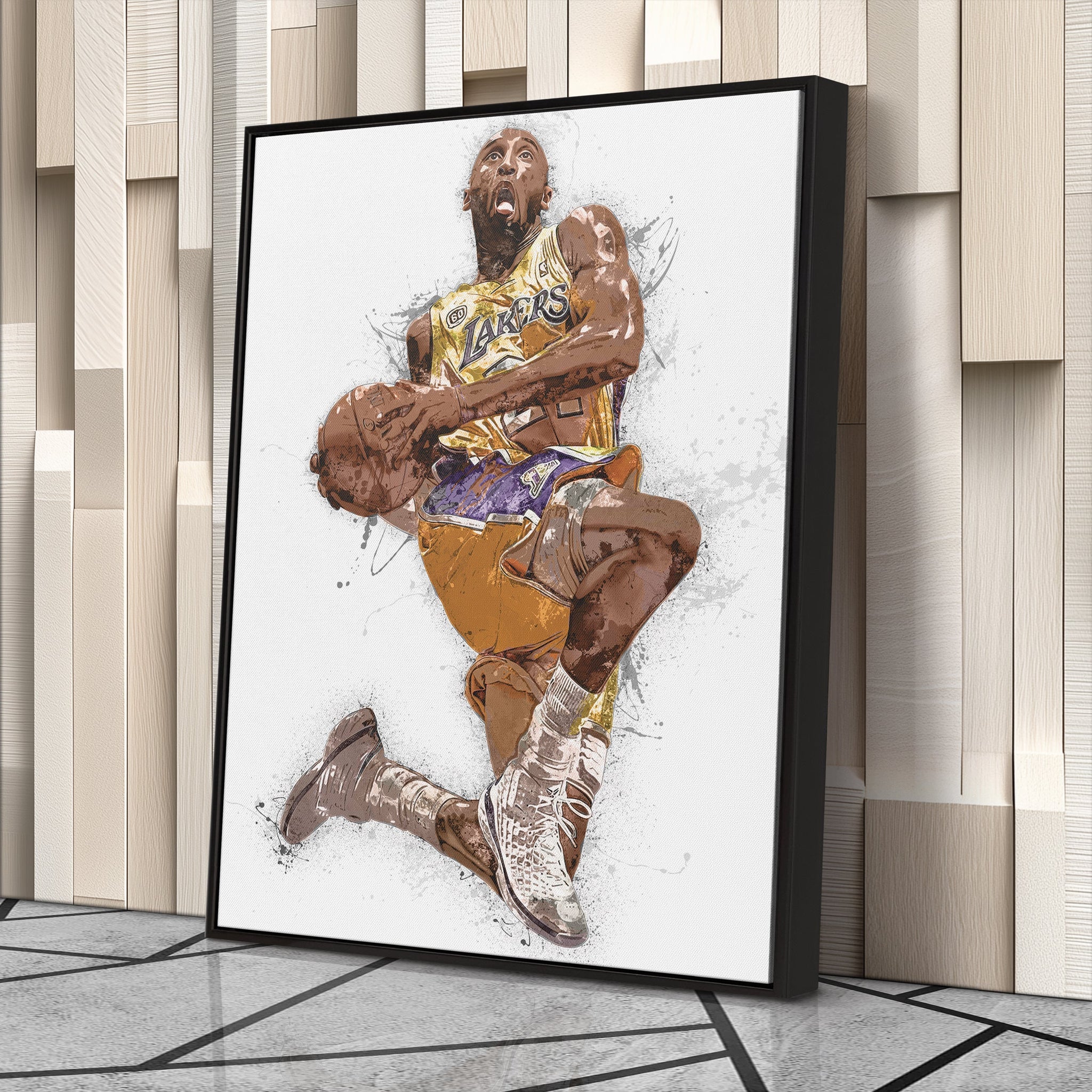 This premium-quality canvas captures Kobe in an iconic moment — rising for a jumper, celebrating victory, or showcasing his trademark focus — framed in the classic purple and gold of the Lakers. Whether displayed in a fan cave, office, or sports-themed room, this piece adds energy, inspiration, and championship pride to your walls.