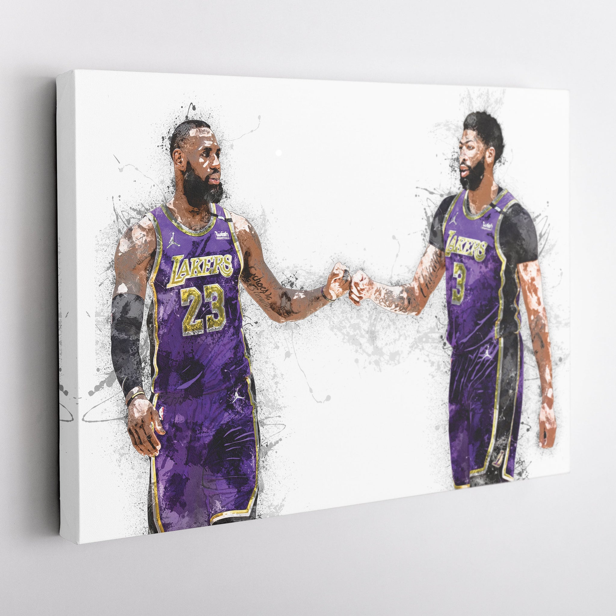 Celebrate the superstar duo that brought championship glory back to Los Angeles with this LeBron James & Anthony Davis Canvas Art – a tribute to two of the NBA’s most dominant forces teaming up in purple and gold. LeBron’s legendary leadership and AD’s unstoppable presence in the paint combine to create a dynamic pairing that defines Lakers greatness.