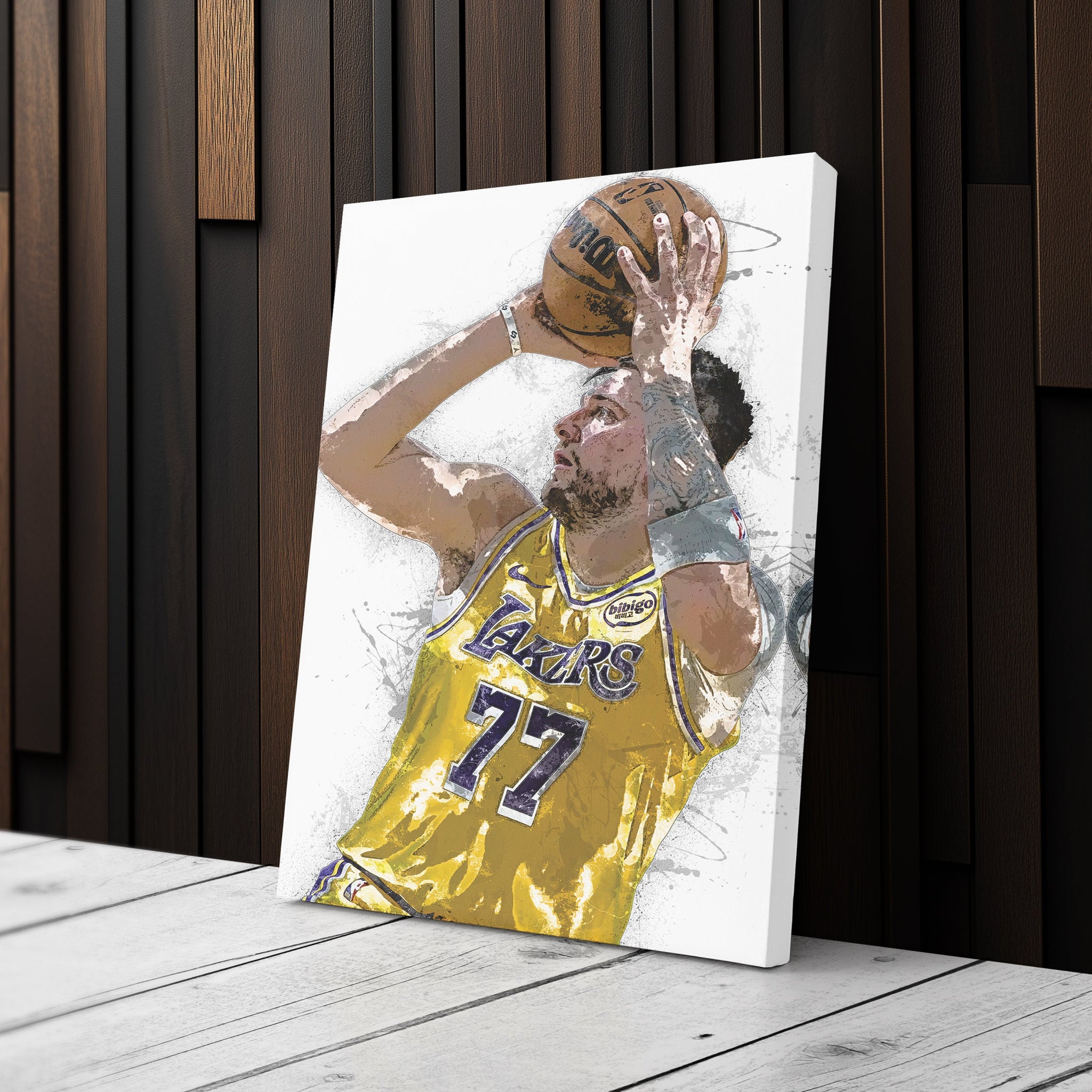 Celebrate the unstoppable talent and superstar aura of one of basketball’s brightest stars—with a hypothetical Lakers twist—with this Luka Dončić Canvas Art. While Luka currently dazzles in Dallas, this imaginative piece reimagines him in Lakers purple and gold, showcasing his dynamic scoring, elite court vision, and explosive athleticism. Whether you're a Mavericks fan indulging in “what if” or a Lakers dreamer crafting a fantasy lineup, this canvas brings high-end NBA flair and big-name energy to any room.