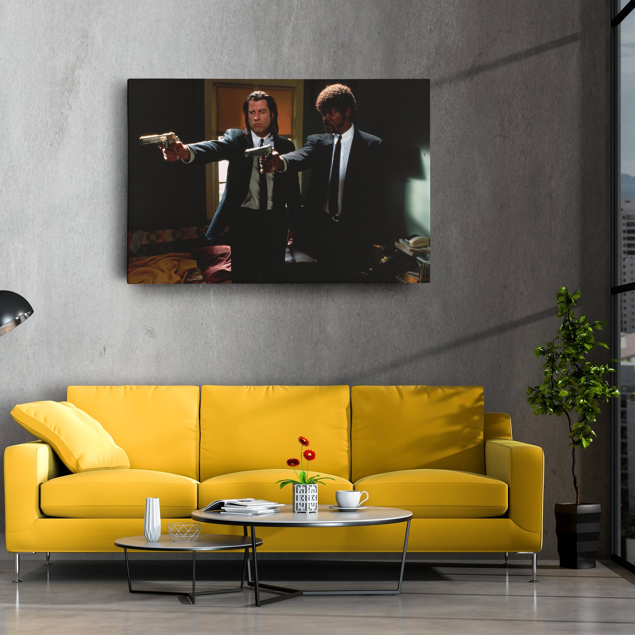 Bring the bold style and unforgettable dialogue of Quentin Tarantino’s masterpiece into your home with this Pulp Fiction Vincent & Jules Canvas Art. Featuring John Travolta and Samuel L. Jackson as Vincent Vega and Jules Winnfield, this striking artwork captures the essence of their cool, fearless, and iconic partnership. It’s a tribute to their sharp suits, sharp wit, and sharp aim — a true piece of pop culture history.