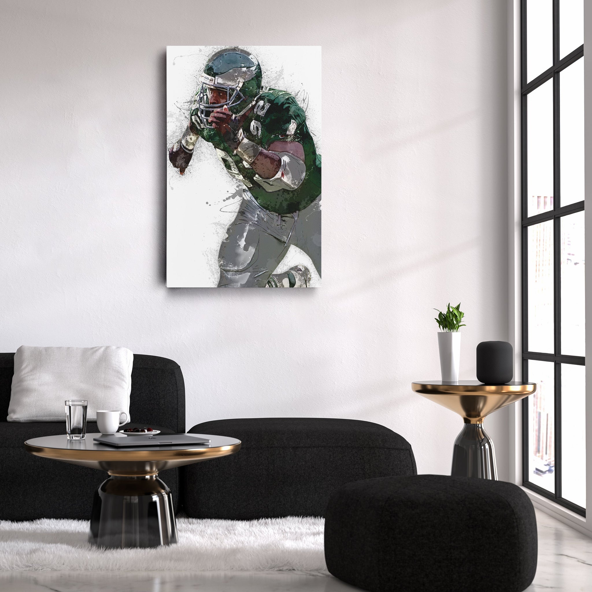 This premium-quality canvas captures Reggie in a signature moment — bursting through blockers, celebrating a sack, or commanding the defense — framed in the Eagles’ classic midnight green, black, and silver. Whether displayed in a sports-themed room, fan cave, or office, this piece brings pride, history, and Philadelphia football greatness to your décor.