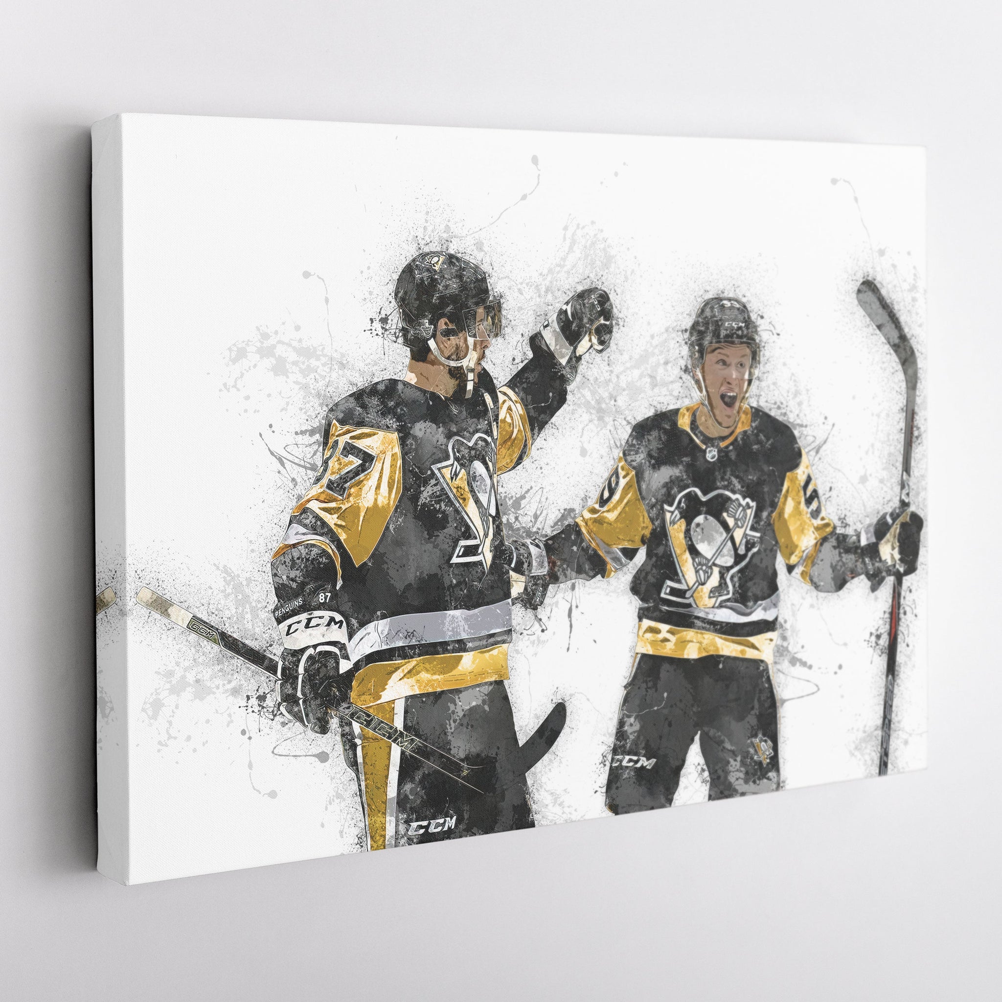 Celebrate the chemistry, leadership, and scoring power of one of hockey’s most dynamic duos with this Sidney Crosby & Jake Guentzel Canvas Art – a tribute to the Pittsburgh Penguins stars whose teamwork, skill, and clutch performances have thrilled fans for years. Crosby’s legendary playmaking combined with Guentzel’s lethal finishing makes them a force on the ice and a source of pride for Penguins Nation.