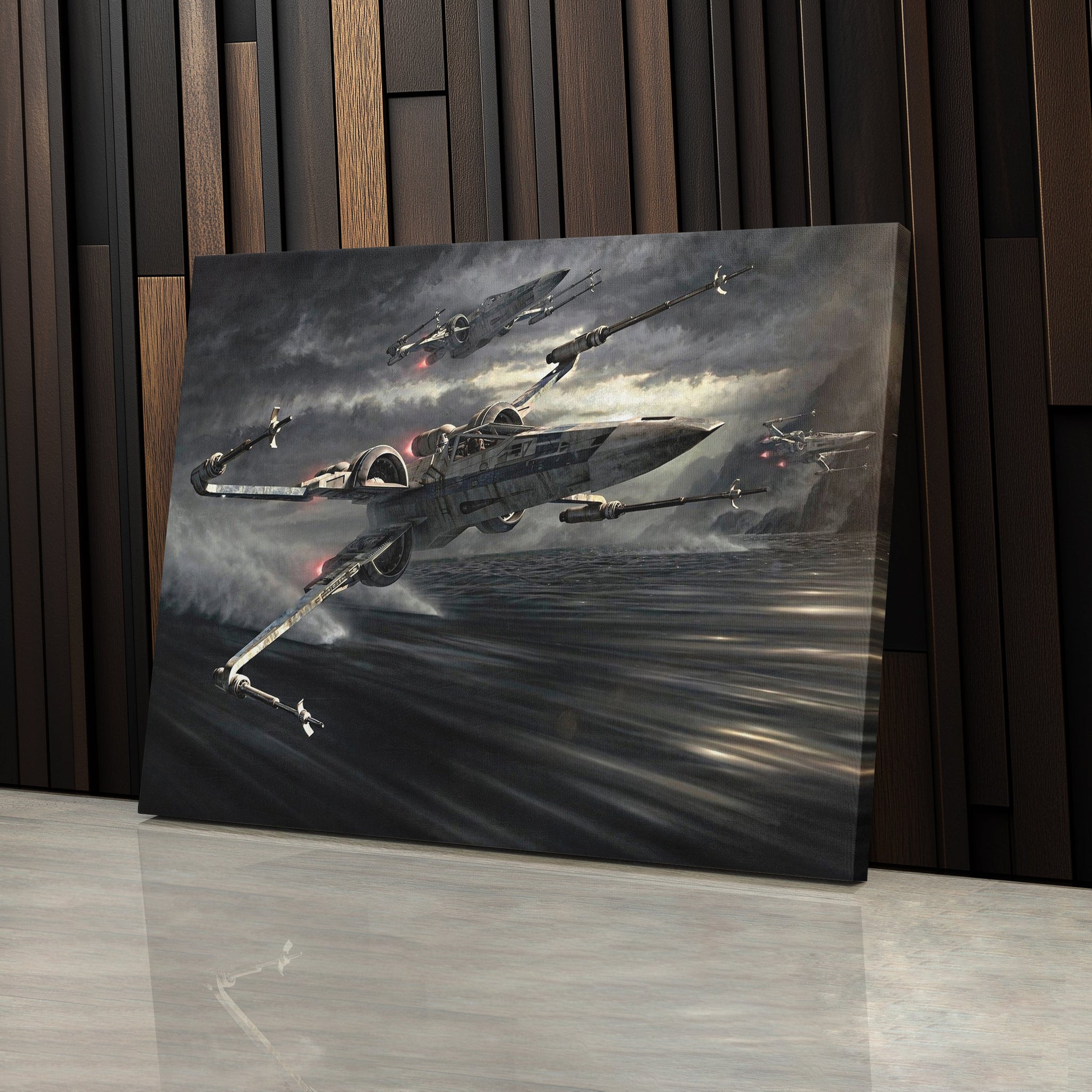 Honor the Resistance and fuel your passion for the galaxy far, far away with this epic X-Wing canvas — a must-have for Star Wars fans and movie lovers.