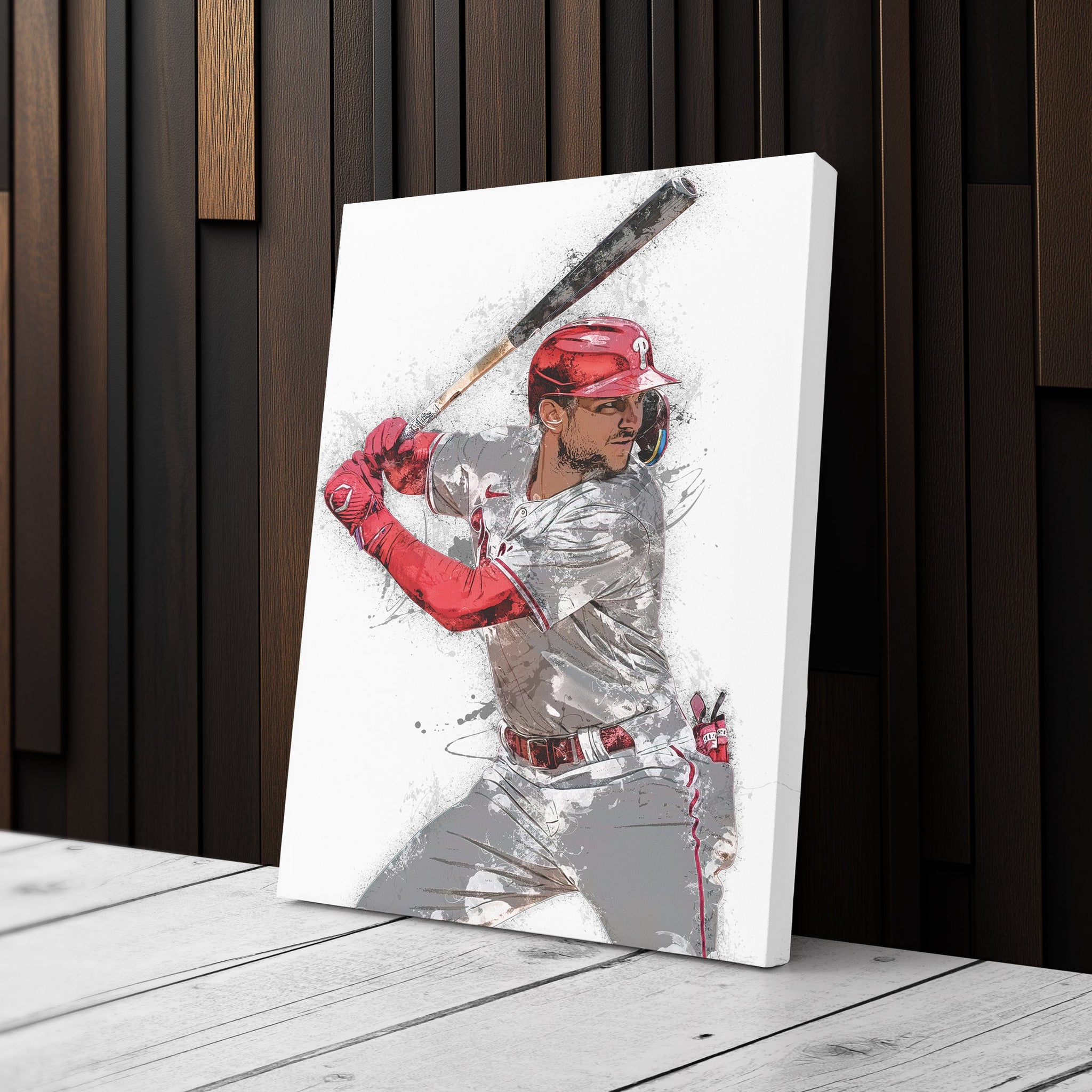 This premium-quality canvas captures Trea in a signature moment — stealing a base, making a dazzling defensive play, or driving in a key run — framed in the Phillies’ iconic red, white, and blue. Whether displayed in a sports-themed room, office, or fan cave, this piece brings pride, energy, and Philadelphia baseball tradition to your décor.
