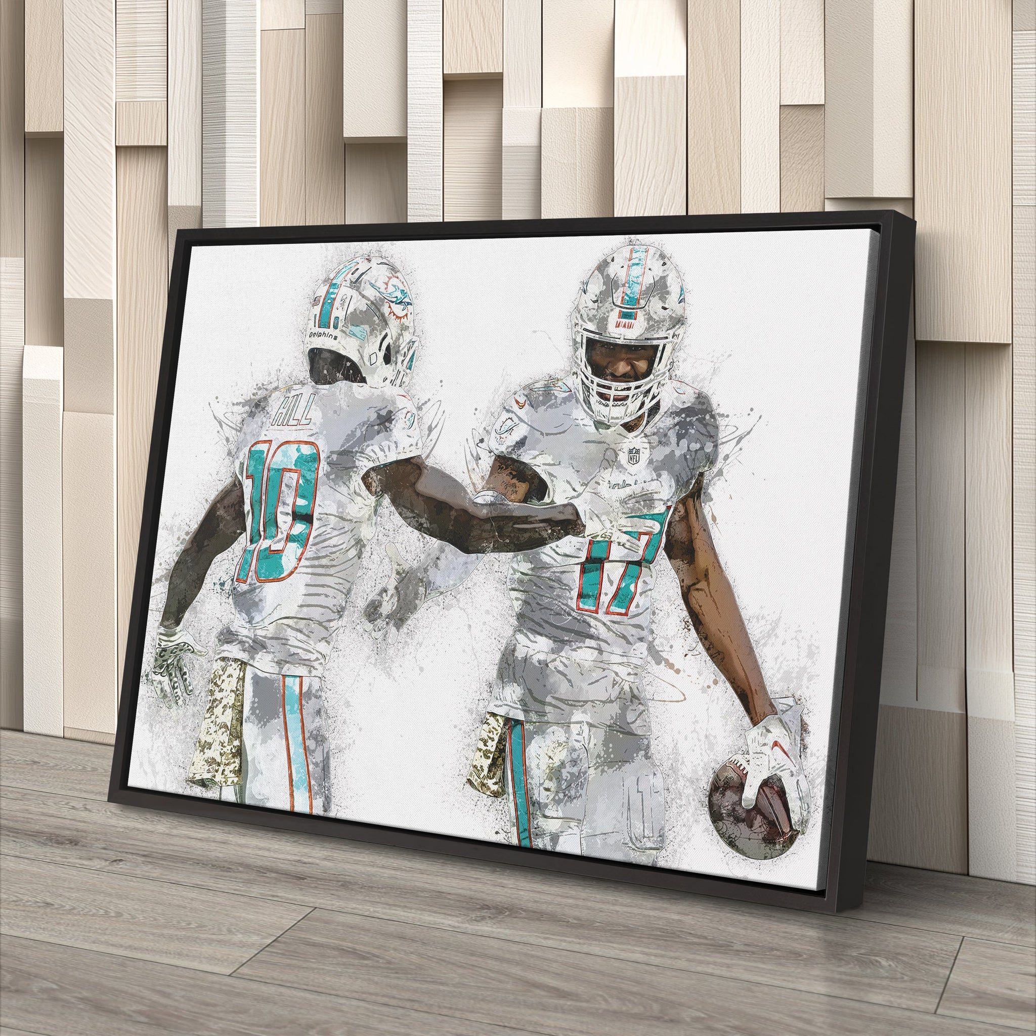 Bring Dolphins pride and big-play energy to your décor with this Tyreek Hill & Jaylen Waddle canvas — a must-have for loyal Miami fans and NFL collectors.