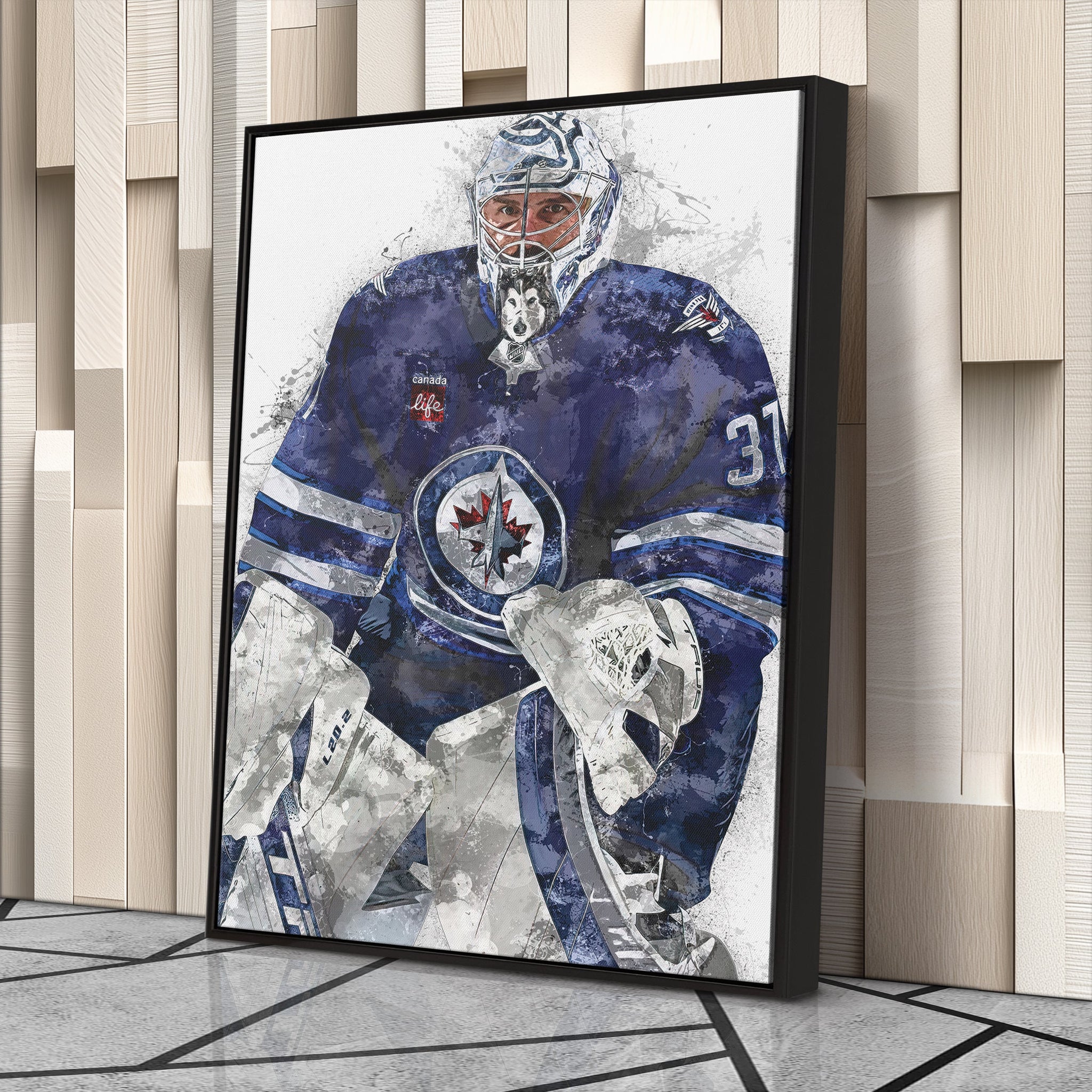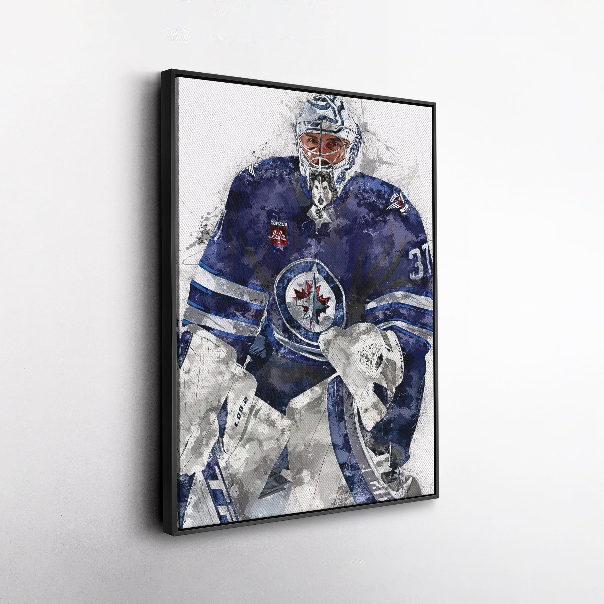 Perfect for Jets fans, NHL collectors, and hockey enthusiasts, this premium canvas print delivers sharp detail, bold blue and white tones, and an intense game-day atmosphere. Whether displayed in a man cave, sports room, or office, it’s the ideal decor for those who appreciate world-class goaltending.