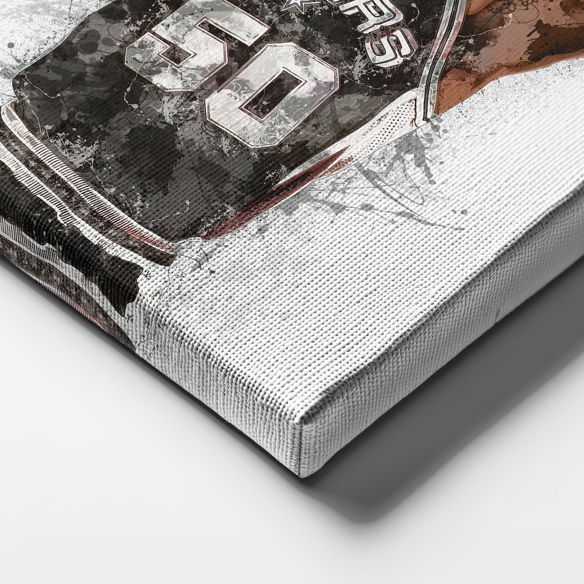 Perfect for Spurs fans, basketball historians, or collectors of NBA greatness, this premium canvas print features high-resolution detail, Spurs' iconic black, silver, and white color palette, and a bold composition that demands attention. Whether for a game room, office, or sports wall, this piece celebrates the heart of 90s Spurs basketball.